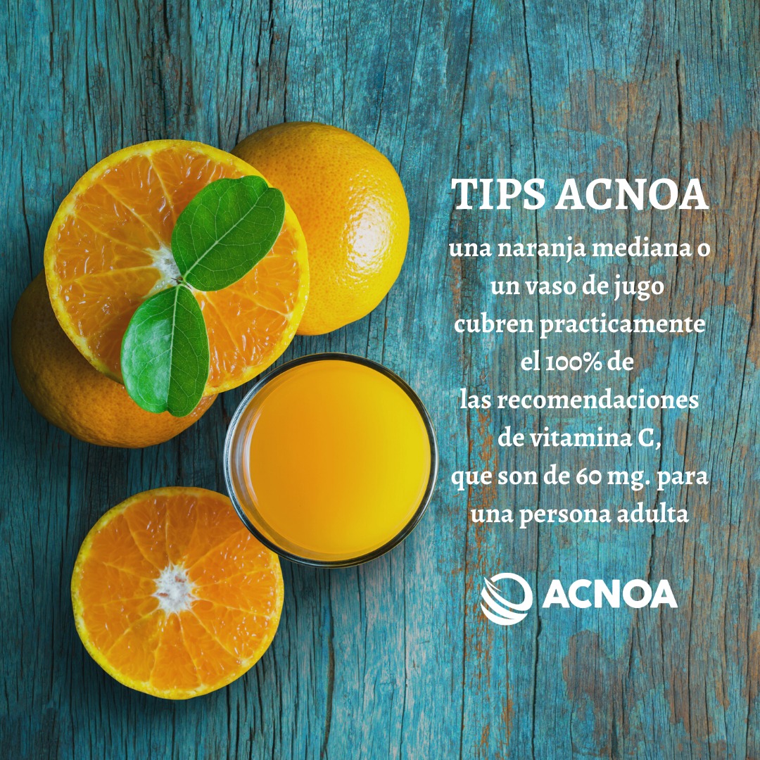 Una naranja mediana o un vaso de zumo cubren prácticamente el 100% de las recomendaciones de vitamina C, que son de 60 miligramos para una persona adulta.